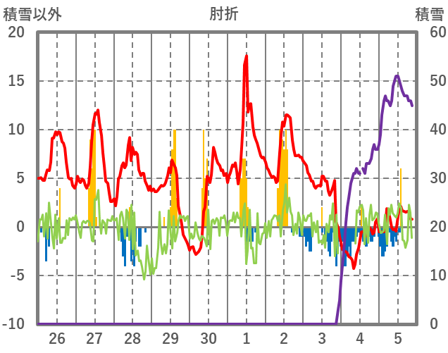 | 日 | 時 | 気温 | 降水 | 風向/風速 | 日照 | 積雪 | 降雪 |