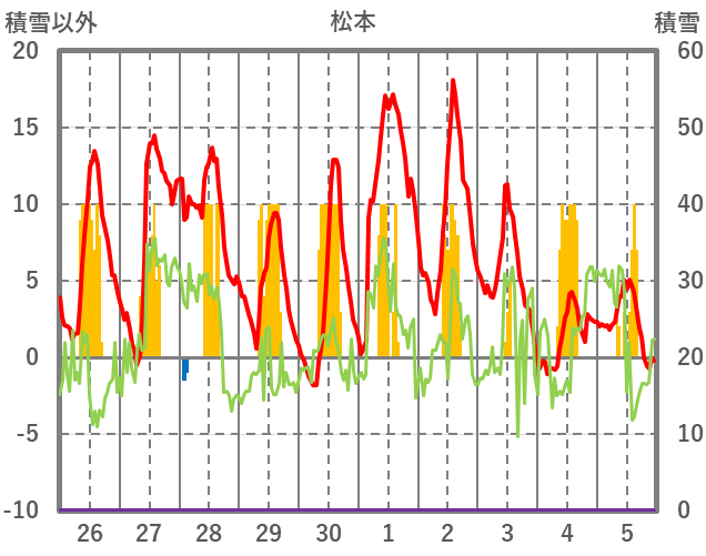 | 日 | 時 | 気温 | 降水 | 風向/風速 | 日照 | 積雪 | 降雪 |
