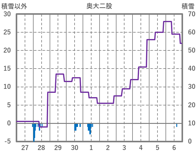 | 日 | 時 | 気温 | 降水 | 風向/風速 | 日照 | 積雪 | 降雪 |