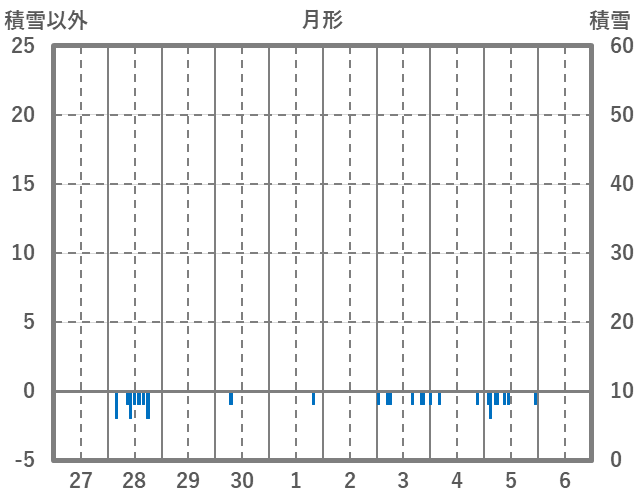 | 日 | 時 | 気温 | 降水 | 風向/風速 | 日照 | 積雪 | 降雪 |