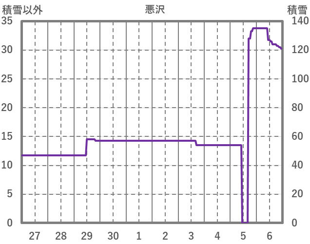 | 日 | 時 | 気温 | 降水 | 風向/風速 | 日照 | 積雪 | 降雪 |