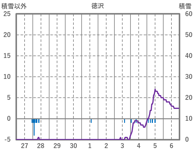 | 日 | 時 | 気温 | 降水 | 風向/風速 | 日照 | 積雪 | 降雪 |