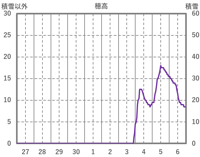 | 日 | 時 | 気温 | 降水 | 風向/風速 | 日照 | 積雪 | 降雪 |