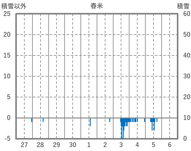 | 日 | 時 | 気温 | 降水 | 風向/風速 | 日照 | 積雪 | 降雪 |