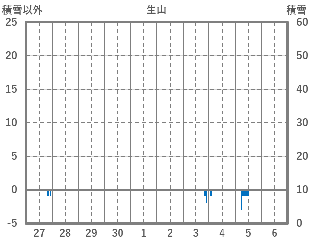 | 日 | 時 | 気温 | 降水 | 風向/風速 | 日照 | 積雪 | 降雪 |