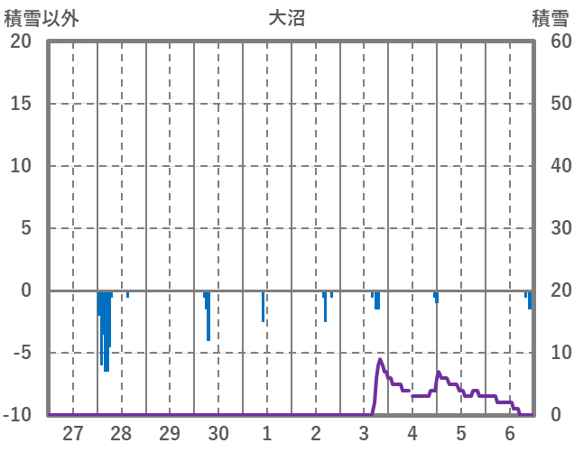 | 日 | 時 | 気温 | 降水 | 風向/風速 | 日照 | 積雪 | 降雪 |