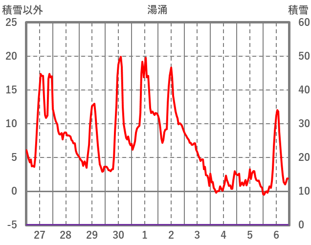 | 日 | 時 | 気温 | 降水 | 風向/風速 | 日照 | 積雪 | 降雪 |