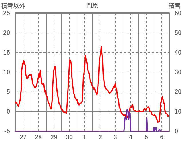 | 日 | 時 | 気温 | 降水 | 風向/風速 | 日照 | 積雪 | 降雪 |