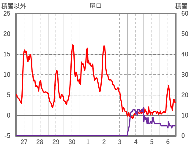 | 日 | 時 | 気温 | 降水 | 風向/風速 | 日照 | 積雪 | 降雪 |