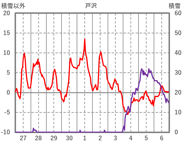 | 日 | 時 | 気温 | 降水 | 風向/風速 | 日照 | 積雪 | 降雪 |