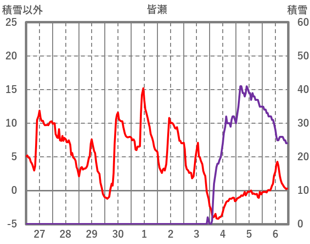 | 日 | 時 | 気温 | 降水 | 風向/風速 | 日照 | 積雪 | 降雪 |