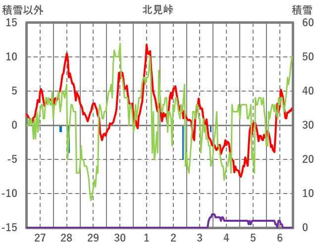 | 日 | 時 | 気温 | 降水 | 風向/風速 | 日照 | 積雪 | 降雪 |