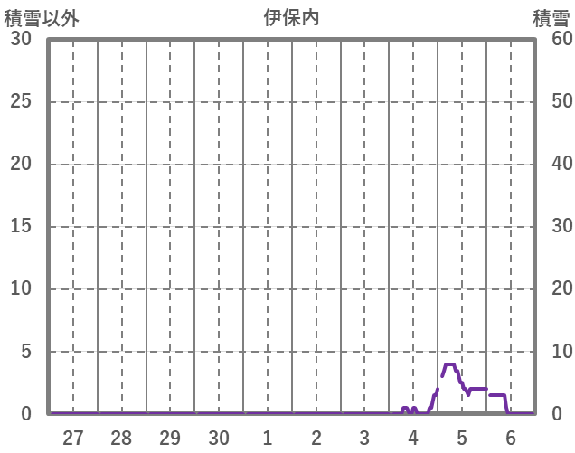 | 日 | 時 | 気温 | 降水 | 風向/風速 | 日照 | 積雪 | 降雪 |