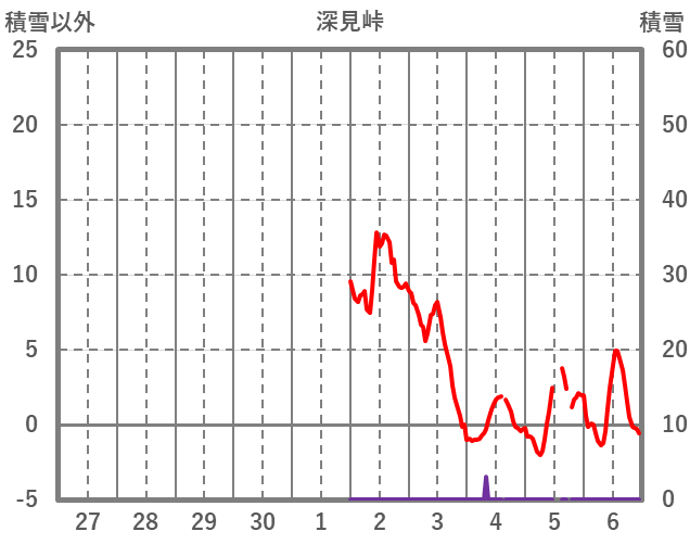 | 日 | 時 | 気温 | 降水 | 風向/風速 | 日照 | 積雪 | 降雪 |
