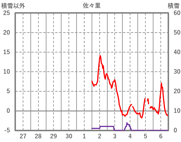 | 日 | 時 | 気温 | 降水 | 風向/風速 | 日照 | 積雪 | 降雪 |