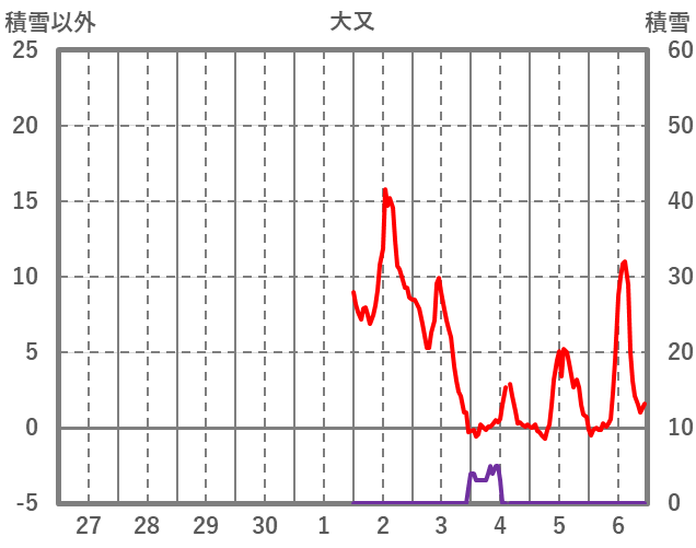 | 日 | 時 | 気温 | 降水 | 風向/風速 | 日照 | 積雪 | 降雪 |