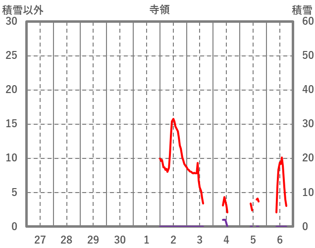 | 日 | 時 | 気温 | 降水 | 風向/風速 | 日照 | 積雪 | 降雪 |