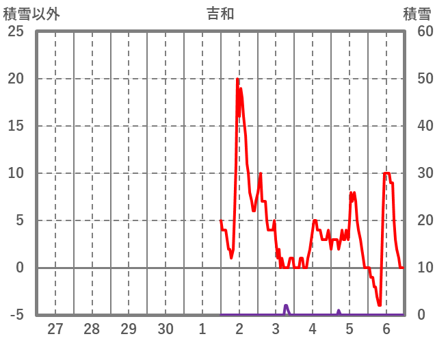 | 日 | 時 | 気温 | 降水 | 風向/風速 | 日照 | 積雪 | 降雪 |