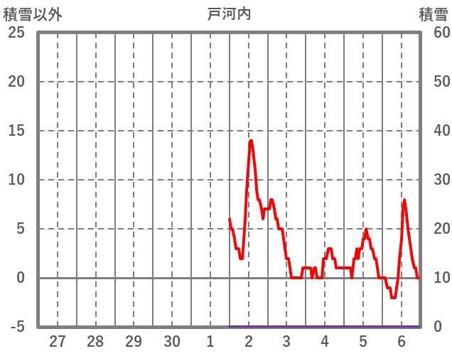 | 日 | 時 | 気温 | 降水 | 風向/風速 | 日照 | 積雪 | 降雪 |
