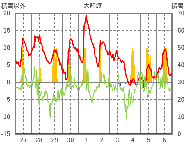 | 日 | 時 | 気温 | 降水 | 風向/風速 | 日照 | 積雪 | 降雪 |
