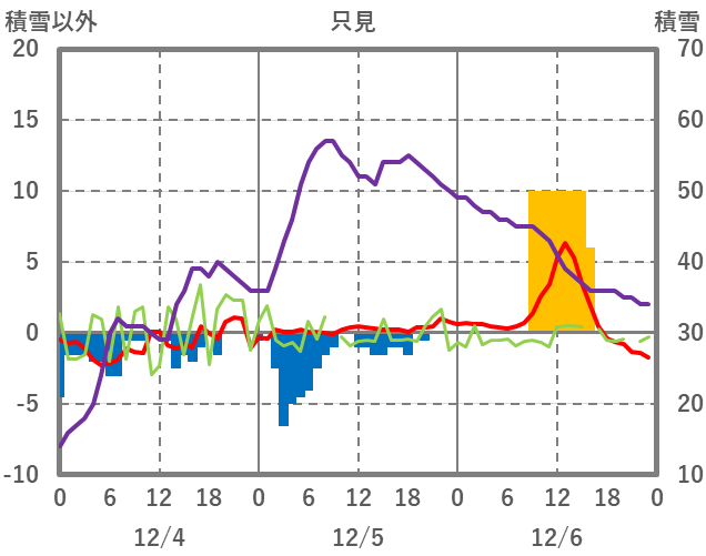 | 日 | 時 | 気温 | 降水 | 風向/風速 | 日照 | 積雪 | 降雪 |