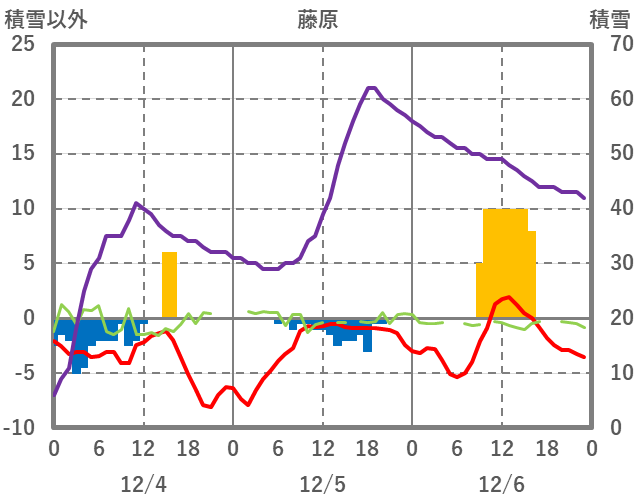 | 日 | 時 | 気温 | 降水 | 風向/風速 | 日照 | 積雪 | 降雪 |