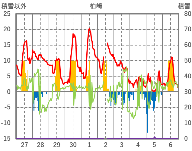 | 日 | 時 | 気温 | 降水 | 風向/風速 | 日照 | 積雪 | 降雪 |