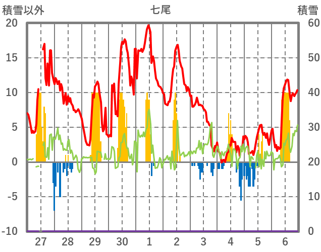 | 日 | 時 | 気温 | 降水 | 風向/風速 | 日照 | 積雪 | 降雪 |