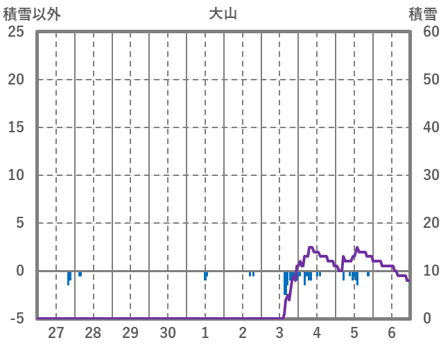 | 日 | 時 | 気温 | 降水 | 風向/風速 | 日照 | 積雪 | 降雪 |