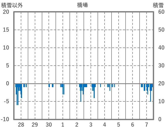 | 日 | 時 | 気温 | 降水 | 風向/風速 | 日照 | 積雪 | 降雪 |
