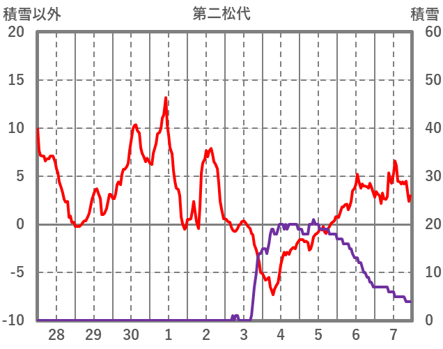 | 日 | 時 | 気温 | 降水 | 風向/風速 | 日照 | 積雪 | 降雪 |