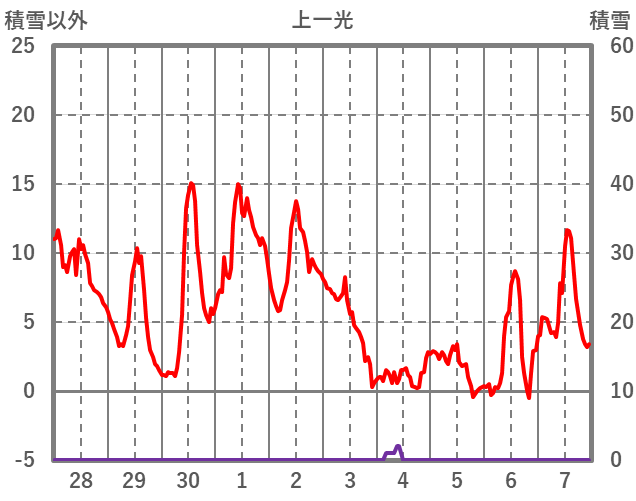 | 日 | 時 | 気温 | 降水 | 風向/風速 | 日照 | 積雪 | 降雪 |