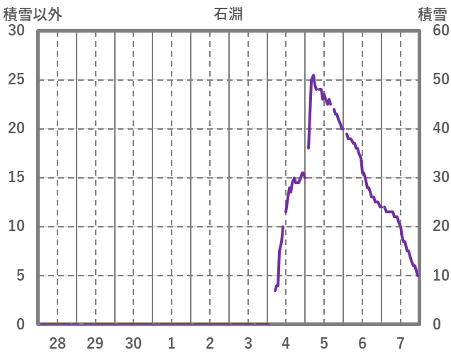 | 日 | 時 | 気温 | 降水 | 風向/風速 | 日照 | 積雪 | 降雪 |