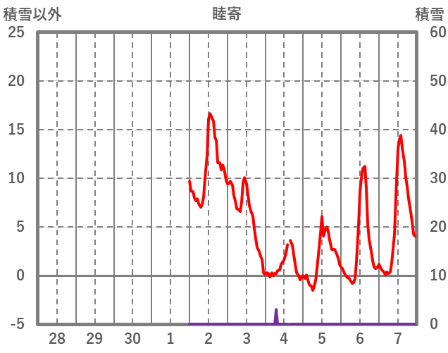 | 日 | 時 | 気温 | 降水 | 風向/風速 | 日照 | 積雪 | 降雪 |