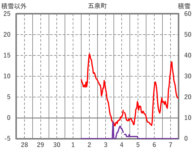 | 日 | 時 | 気温 | 降水 | 風向/風速 | 日照 | 積雪 | 降雪 |