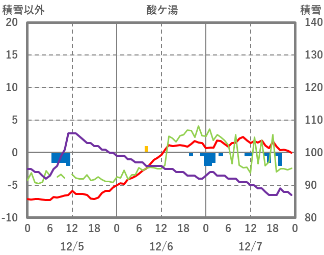 | 日 | 時 | 気温 | 降水 | 風向/風速 | 日照 | 積雪 | 降雪 |