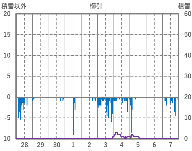 | 日 | 時 | 気温 | 降水 | 風向/風速 | 日照 | 積雪 | 降雪 |