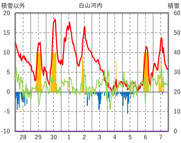 | 日 | 時 | 気温 | 降水 | 風向/風速 | 日照 | 積雪 | 降雪 |