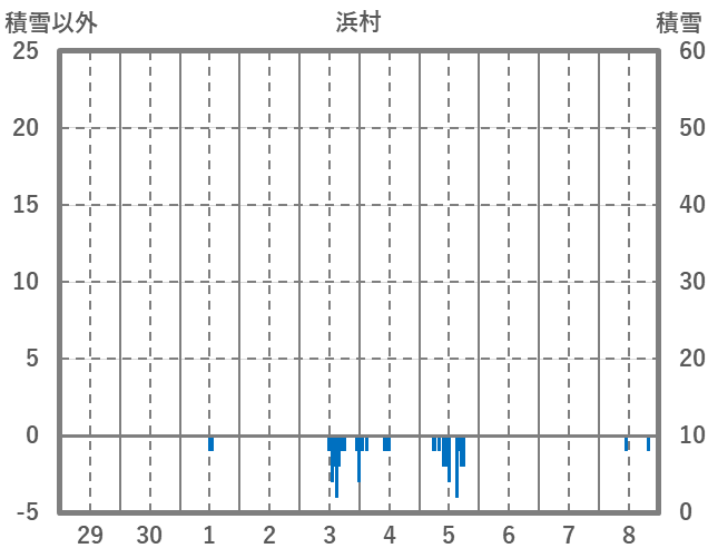 | 日 | 時 | 気温 | 降水 | 風向/風速 | 日照 | 積雪 | 降雪 |