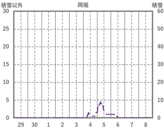 | 日 | 時 | 気温 | 降水 | 風向/風速 | 日照 | 積雪 | 降雪 |