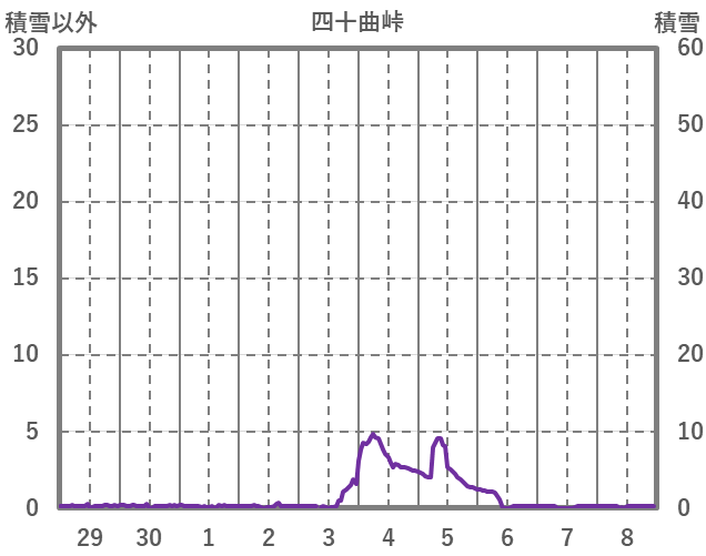 | 日 | 時 | 気温 | 降水 | 風向/風速 | 日照 | 積雪 | 降雪 |