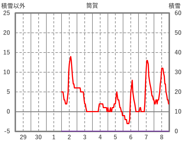 | 日 | 時 | 気温 | 降水 | 風向/風速 | 日照 | 積雪 | 降雪 |