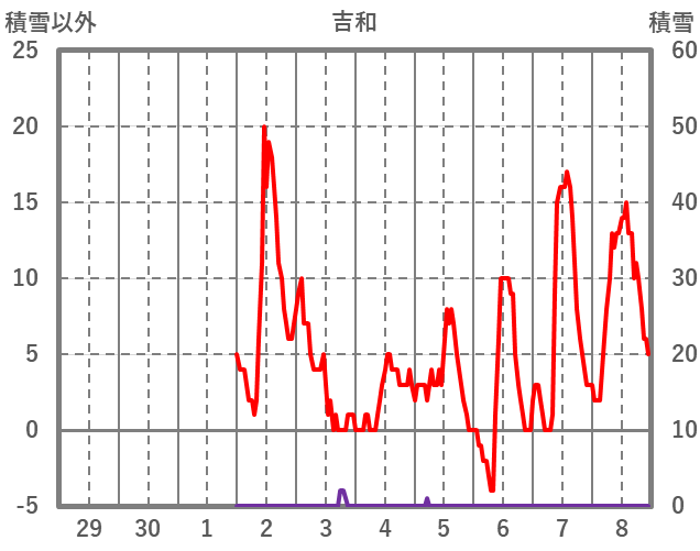 | 日 | 時 | 気温 | 降水 | 風向/風速 | 日照 | 積雪 | 降雪 |