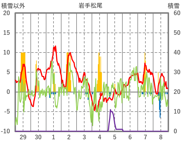 | 日 | 時 | 気温 | 降水 | 風向/風速 | 日照 | 積雪 | 降雪 |