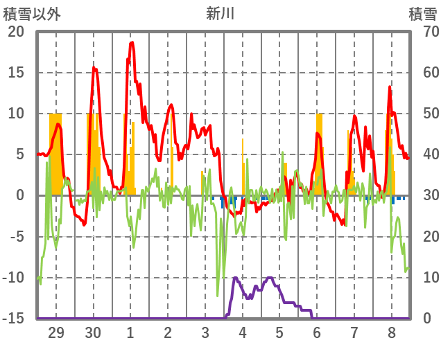 | 日 | 時 | 気温 | 降水 | 風向/風速 | 日照 | 積雪 | 降雪 |