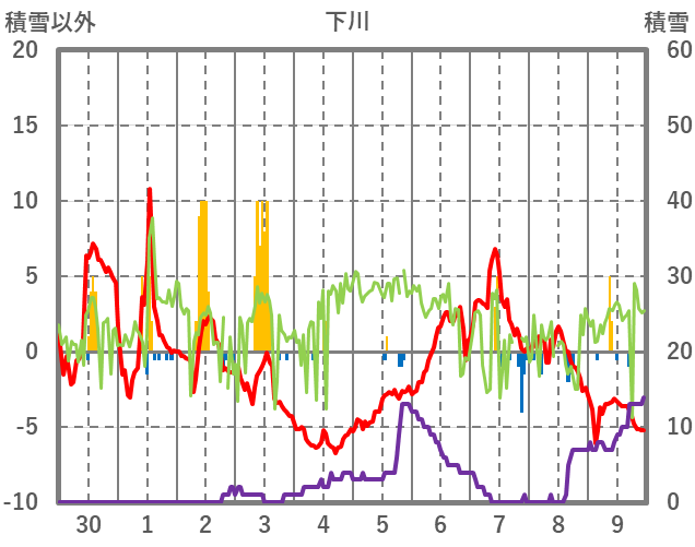 | 日 | 時 | 気温 | 降水 | 風向/風速 | 日照 | 積雪 | 降雪 |