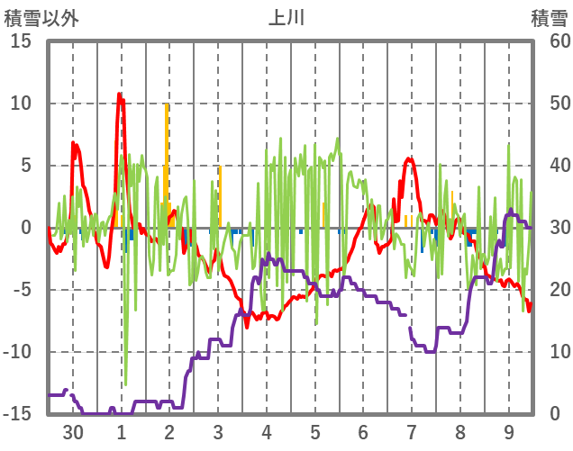 | 日 | 時 | 気温 | 降水 | 風向/風速 | 日照 | 積雪 | 降雪 |