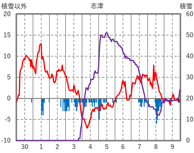 | 日 | 時 | 気温 | 降水 | 風向/風速 | 日照 | 積雪 | 降雪 |