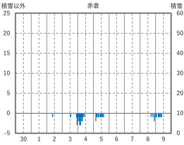 | 日 | 時 | 気温 | 降水 | 風向/風速 | 日照 | 積雪 | 降雪 |