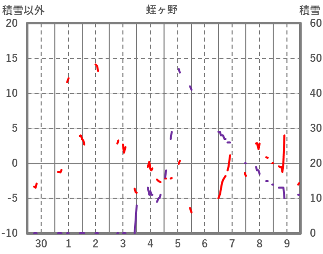 | 日 | 時 | 気温 | 降水 | 風向/風速 | 日照 | 積雪 | 降雪 |